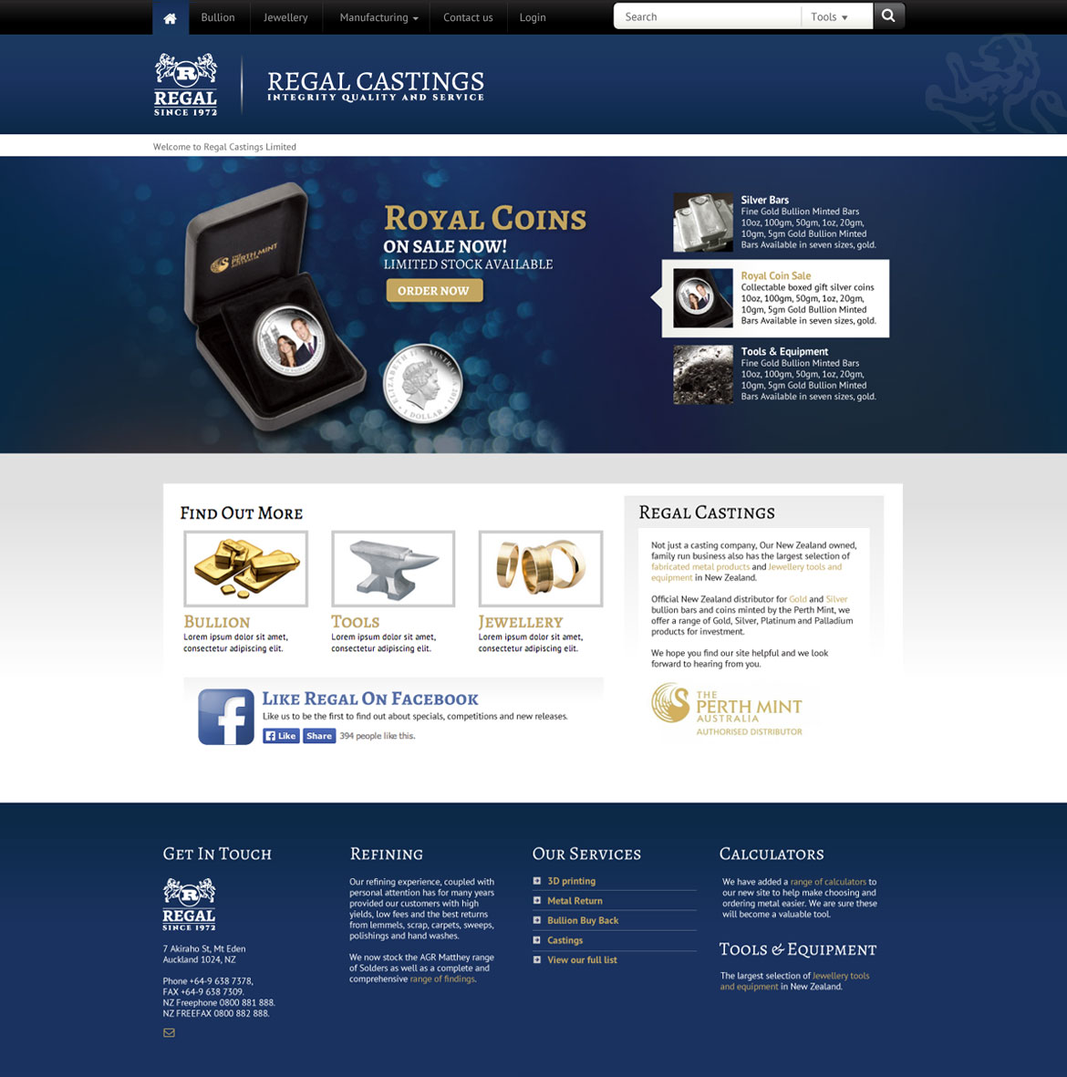 I did my usual research and discovery phase, sketched some wireframes followed by discussions with the Regal team. I then mocked up flat designs which included quickly tweaking the brand and selecting some fonts and colour schemes for the various departments. I started on some brand and web guidelines for the development handover, but it was at this stage the client found it hard to grasp flat designs and an html prototype was required - this took over the need for detailed web guidelines as the css would suffice.