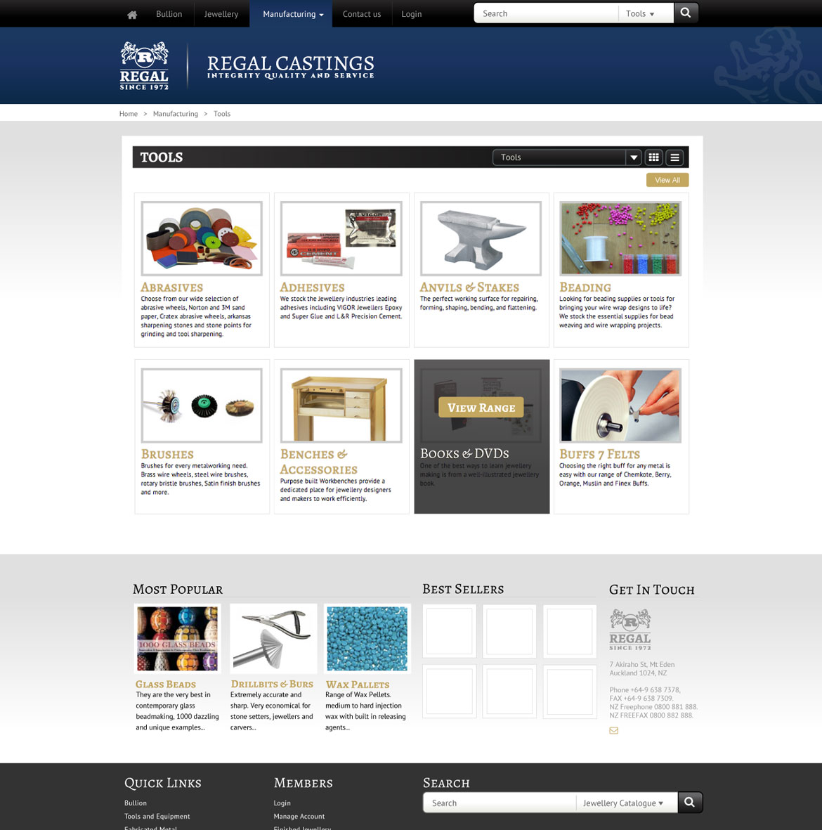 2.) Regal Manufacturing & Tools: Includes a full range of Jewellery tools and many services involved with making Jewellery such as Castings and 3D Printing.