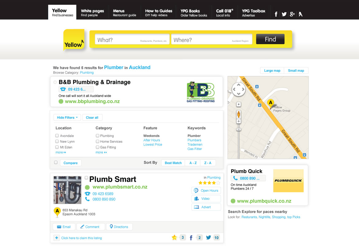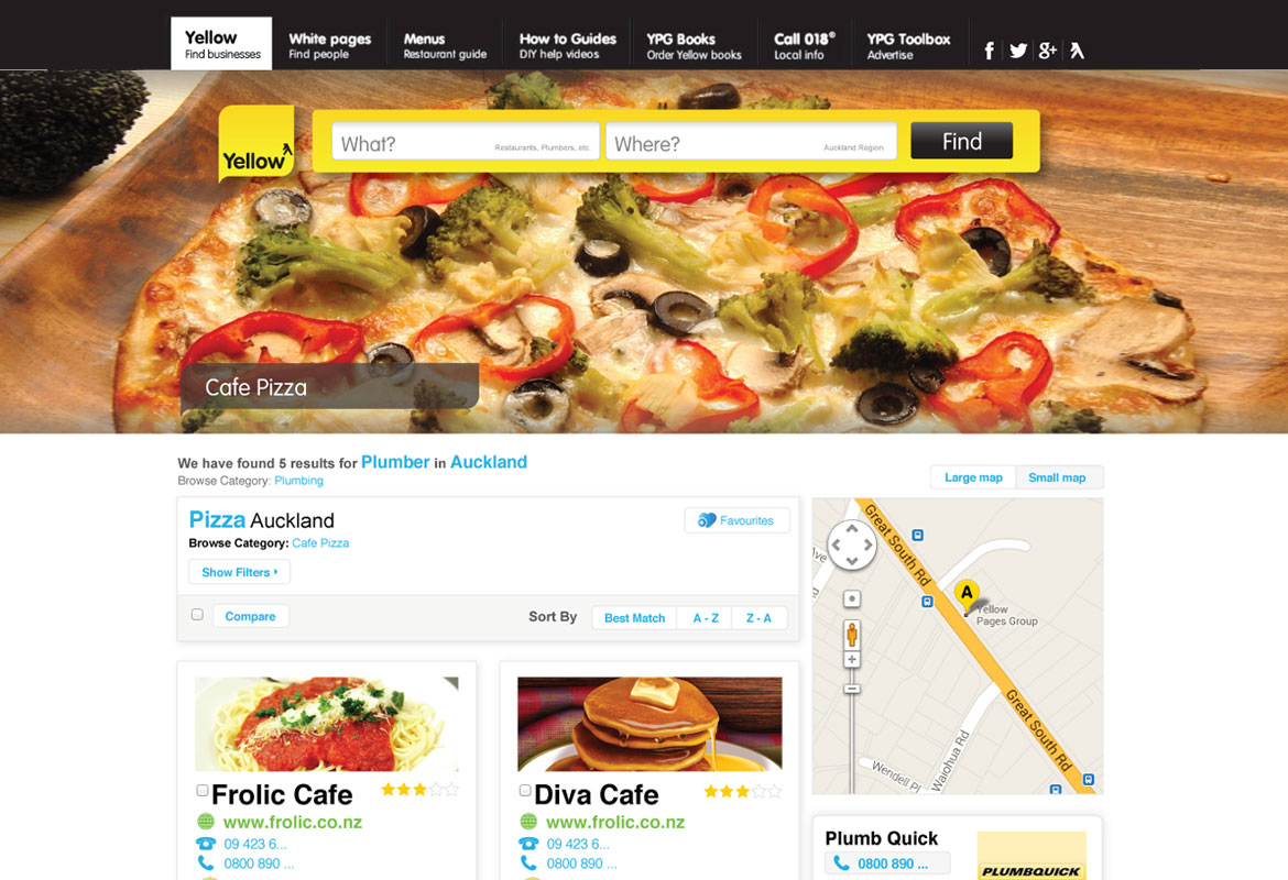 Responsibile for the daily maitenance design and front-end of Yellow, Menus, Finda and the Whitepages websites. This included adding new features such as ratings and reviews which required the ability to administor the reviews.
