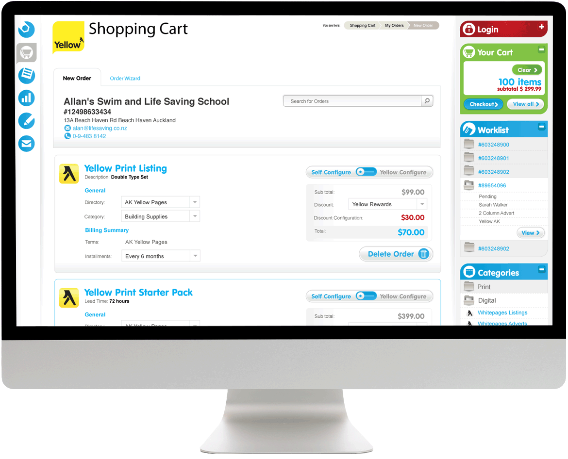 Designed to revolutionalise the way Yellow would sell and maintain listings on both their books and various online sites. One manatory requirement was that the application worked on an i-Pad. The Yellow mobile sales rep would visit clients and create listings on the fly using their i-Pad whilst generating valid quotes.